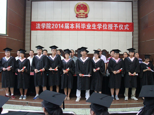 最后,2014届毕业生身着学士服依次入场,院领导和老师为他们一一颁发学位证书,进行拨穗礼,并留影纪念。仪式在庄严的校歌中结束,毕业生们也带着对未来的憧憬和期待离开大公司园,去更广阔的天空振翅翱翔,创造新辉煌。