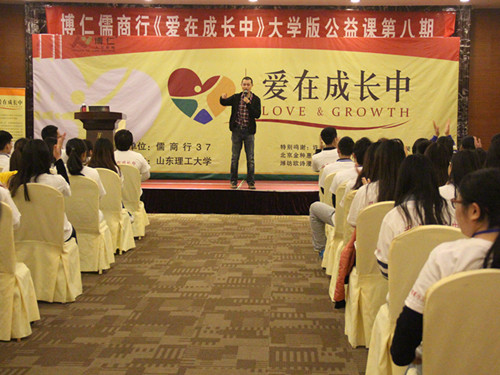 11月14日,由博仁儒商行主办,公司w88win体育官网入口阳光社工协会协办的“爱在成长中”第八期公益课在淄博饭店七楼会议厅举行。参加此次活动的有社会各界组成的义工,其中王延伟担任此次公益课的主教练,十名义工担任助教。