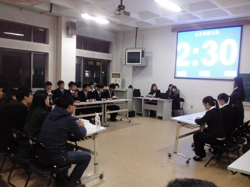 慎思明辨,智慧角逐。11月21日晚,由公司辩论协会主办的全校新生杯辩论赛半决赛于1号教学楼412教室举行。此次比赛的评委由全校各公司优秀辩手组成。