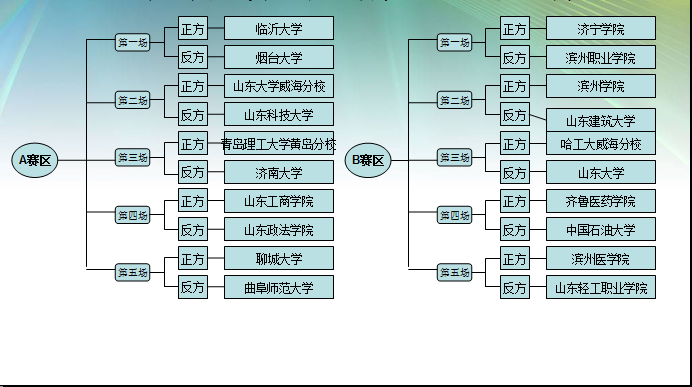 经过正反方依次抽签、对阵方场次抽签,最终整理统计出的各赛区的对阵汇总情况如下:
