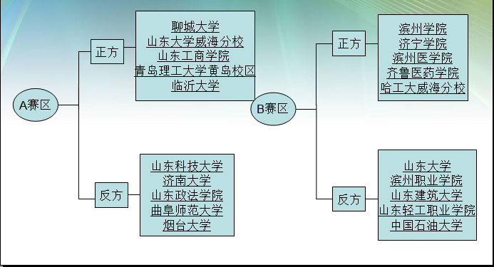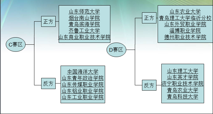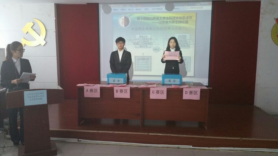 此次抽签共分为抽赛区和抽对阵双方两个阶段。来自全省各大高校的40支队伍报名参加,分属A、B、C、D四个赛区。根据规则,上届山东省老员工辩论赛的前八强为种子队,其余32支队伍依据报名顺序也分别依次确立了各自的正反方立场。