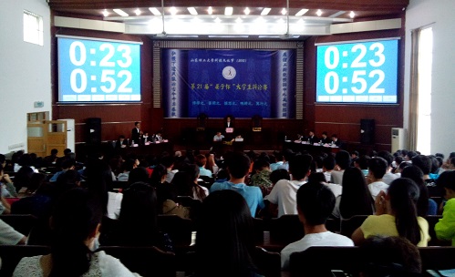 比赛最后,胡安水老师就辩题与选手表现进行现场点评。他说,两个代表队基本逻辑思维具备,但在反击、概念发展方面仍需努力。在辩题方面,他深入分析了老员工创业盈利与积累经验的相互关系。