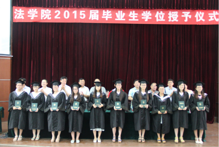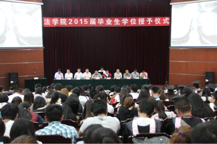 最后,2015届毕业生身着学士服依次入场,院领导和老师为他们一一颁发学位证书,并留影纪念,仪式在庄严的校歌中结束。毕业生们带着对未来的憧憬和期待离开校园,去创造新辉煌。