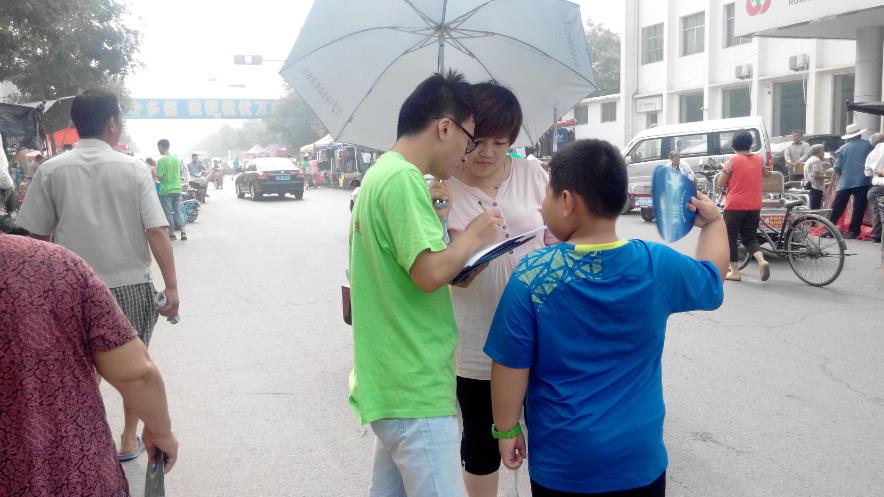 上午8点30分,实践队成员进入桓台县唐山镇大集,向前来赶集的人们发放手中印有法律援助热线的扇子和由桓台县司法局编写的《百案释法 普法惠民》一书。前来赶集的人们非常耐心地听志愿者们讲解有关法律援助的专业知识,我们的志愿者也热情、专业地给前来询问的群众解疑答惑。虽然今天气温比较高,但我们的志愿者们依然坚持给每位前来咨询的群众提供专业的解答,力求给他们提供一条清晰明确的寻求法律援助的道路。桓台县司法局的领导也一起陪同我们的志愿者们进行法律援助宣传活动,并在志愿者专业知识不足以解答问题时提供必要的帮助。