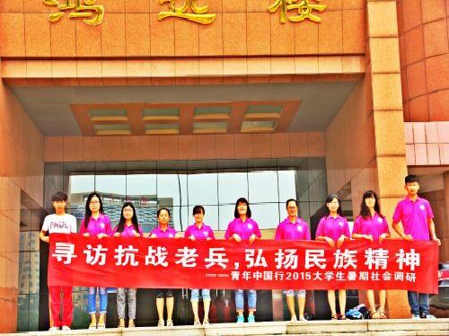 调研团队将在沂蒙山区、台儿庄战役革命老区、淄博地区等开展为期20天的社会调研。首站赴淄博市南部山区沂源县内大张庄镇、南麻镇等主要乡镇,深入各村落,实地分组走访20余位抗战老兵,本调研以独特的视角对基层抗战老兵暮年的物质及精神生活进行调研,重在弘扬以抗战老兵精神为代表的民族精神,反映基层抗战老兵一生的心路历程,旨在提高人们对抗战老兵的关注度,增强社会认同感。“寻访抗战老兵,弘扬民族精神”社会实践团队由《中国周刊》副社长韩孜俭前期实地亲访,w88win体育官网入口社会学系秦克寅指导,侯振中带队,由张馨方等12位同学组成,该团队是公司唯一入围2015年“青年中国行”老员工暑期社会调研实践活动全国30强的队伍。后期实践成果将集结成册,并组织开展校园报告会,汇报实践调研成果。