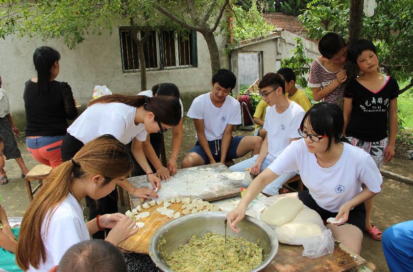 7月22日临沭依旧阳光明媚,但随之而来的是直线上升的高温,实践队员头顶烈日但内心欢快的向康复中心走去,只因今天要和孩子们一起包饺子。