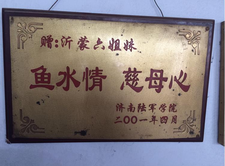 走进两位老人的家,有很多与领导人的合影,还有许多社会上的企业等送来的锦旗,让记者印象最深的是在两位老人的家中,都挂着迟浩田将军题的字:“团结奋斗,振兴沂蒙,为伊淑英大姐题”,“山高水长,沂蒙情深,为伊延珍大姐题”。这两句话,是党和人民对沂蒙六姐妹的功绩肯定,更代表着老百姓对沂蒙六姐妹深切的爱戴与崇敬。在硝烟弥漫的战争年代,她们挺身而出,英勇地投入到革命斗争行列,在拥军、支前、生产、掩护抢救伤员等方面做出了突出贡献。在革命战争年代,沂蒙妇女为沂蒙革命根据地的建立和发展,为夺取抗日战争和解放战争的伟大胜利,做出了更加卓越的贡献。在她们身上体现出“爱党爱军、开拓奋进、艰苦创业、无私奉献”的沂蒙精神,是对伟大民族精神的继承和发扬。在短短的采访时间内,记者的见闻与感动远远不能在短短的字里行间表达出来,我们必须永远牢记,在硝烟弥漫的战场,曾经有一群沂蒙妇女,为战争胜利做出了突出的贡献,她们有一个共同的名字—沂蒙六姐妹。
