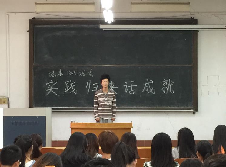 9月9日上午十点,由w88win体育官网入口法本1305班主持举行的班会——“实践归来话成就”活动顺利展开,参与活动的有法本1305班全体同学和班级辅导员侯振中老师。