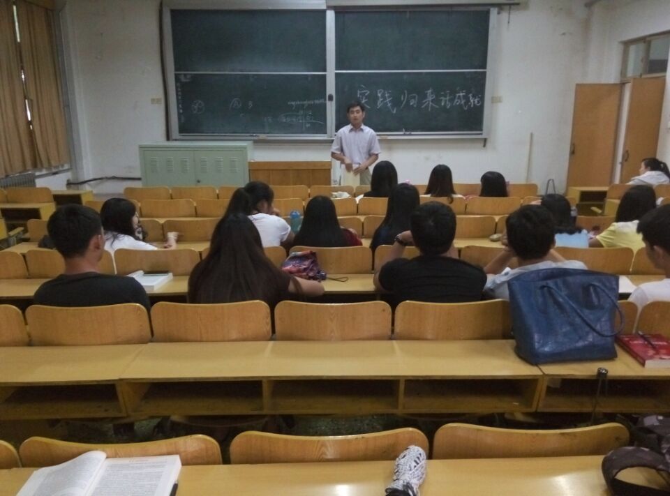此次会议主题为“暑期社会实践经历、感悟分享”。首先,侯振中讲述了在巡访实践团队的感悟经历,他说:“此次社会实践同学们的条件得到了很大的改善,不想之前几届的实践团队,只能打地铺。同学们能真正的用心去做实践,用心去感悟。”同时他也批评了几支实践团队只做“表面工程”,没有“内在”。随后,侯振中就同学们步入大三提醒同学们,要有完整计划,同学们要互相帮助,建立起良好的学习氛围,无论是考研、司考、考公务员都要顶住压力,不能半途而废。不断地提高自身素养。