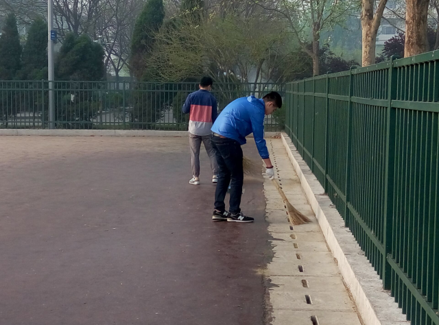 此次实践活动主要面向公司14级各班班长展开,以充分发挥员工干部的引领示范运用。根据实际情况,按就近原则,公司主要负责公司第一体育场及模拟法庭附近区域,10个工作岗位由同学们根据劳动区域的大小及劳动强度自行进行合理分工,2名同学负责第一体育场内部区域,5名同学负责第一体育场外部及第一体育场与模拟法庭交界区域,3名同学负责模拟法庭附近区域。分工完毕,同学们立即投入劳动,他们口戴口罩,手持扫帚,干劲十足。期间,社会工作1402班班长陈鹏炜说道:此次劳动实践活动着实让我体会到保洁工人的不易,也让我近距离的感受到校园的美化与保护校园环境的重要性,我希望以后能够有更多机会来参与此类实践活动,也希望这项活动能够普及到更多的同学,唤起他们的爱校荣校意识。”很快,在各位同学相互配合、努力下,同学们负责的卫生区域被打扫得洁净如洗。