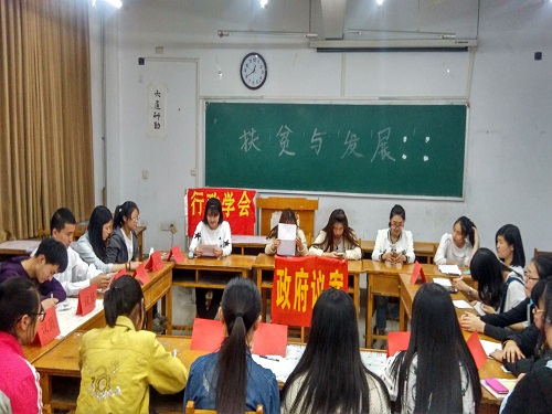 活动伊始,主持人曹雪菲致开场白,并介绍了本次政府议案活动的流程及相关事宜。接着,议员们纷纷就“扶贫与发展”议题展开议论。有的议员指出当前我国扶贫与发展的现状并提出相关解决措施,也有的议员表示扶贫与发展还是要以政府为主导,社会为辅助作用。但是有的政府官员贪污受贿,将扶贫的财政拨款收入囊中,议员们对此现象表示极力的反对,纷纷表示要严惩此种行为。