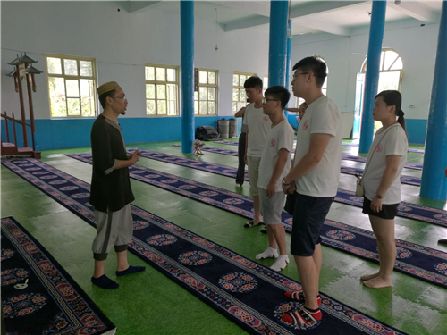 2016年7月14号,“沂源情”社会实践团在镇政府于主任陪同下来到了沂源县西里镇下属的一个名为柳枝峪的民族村。村党支部马书记负责接待工作,他对于调研团的到来表达了极大的欢迎和高度的重视。据马书记介绍,柳枝峪村是西里镇民族工作重点村,该村的回族人数达到了全县乃至全市回族人数的三分之一。在马书记的陪同下,调研团来到了距离村委会不远的清真寺,并见到了清真寺的阿訇。在阿訇的带领下,调研团走进了清真寺的礼拜殿。阿訇很热情很友好的向调研团成员详细介绍了这座清真寺的历史,据说已有将近百年历史。调研团成员在阿訇的陪同下,参观了礼拜殿。阿訇介绍说,礼拜殿分为内殿和外殿,内殿是领导穆斯林进行礼拜活动的阿訇礼拜的地方,外殿是其他穆斯林群众礼拜的地方。另外,在外殿还专门区分了专供女性礼拜的区域。接着,阿訇下向调研团成员介绍了伊斯兰教的教义,他们崇尚和平,敬仰真主,主张男女平等,追求全宇宙全人类的解放和自由。