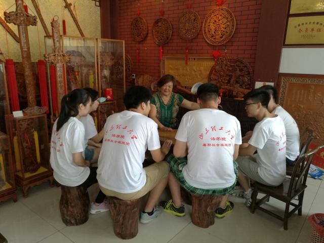 下午,杜氏工艺坊的领导人为我们举办了座谈会,详细介绍了该企业的发展历程、成果以及加工程序。西里镇以林果业为主,很多果木在老化之后就被扔掉,不仅浪费了资源而且还占用了很多空地,该企业领导人也曾面临同样的烦恼,在此情况下该领导人萌发出一种思想将果木深加工,虽然一开始企业面临重重难题,在政府的辅助下,企业很快进入正轨。该企业的建立为当地村民提供了大量的就业机会,拉动了当地经济的发展。该企业先后获得:“淄博市基层科普行动计划—优秀科普基地”、“全国休闲农业产品创意银奖”、“2013年淄博市林业龙头企业”、“第九届中国林产业交易金奖”等荣誉称号。座谈会最后,该领导人为我们分配了明天进入加工车间的任务,并一再提醒我们注意安全。今天我们团队在理论上对果木加工业有了大致的了解,明天我们将进入车间,切身感受各种工艺品的制作过程。