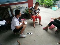 8月16日下午,“心系黎氓”暑期社会调研团队问卷调查活动正式开始。第一站目的地到达滨州市博兴县曹王镇曹营村,通过对村民户籍名单的分层抽样,在1500户中选出30户进行入户调查。在入户调查的过程中,随行成员两两分组,以主次访问员的形式进行地毯式的入户访问。由于分层抽样具有较强的代表性、随机性,被访对象的状况也是各种各样,既有刚成年的员工,也有花甲之年的老人;既有高学历的技术人员,也有文盲的农民。针对不同的受访对象,团队成员耐心、细心、仔细的解释问卷中的各个选项,认真回答受访者的各种问题,在保证问卷填写质量的前提下尽可能提高速度。最后,在开始调查后的5个小时后,团队20名成员高效率完成问卷填写。