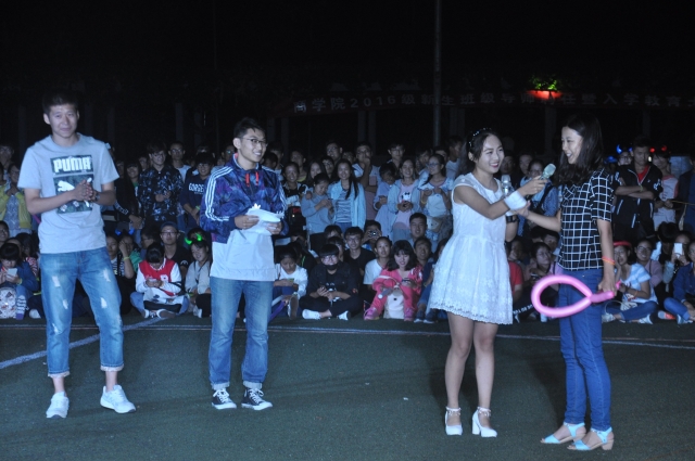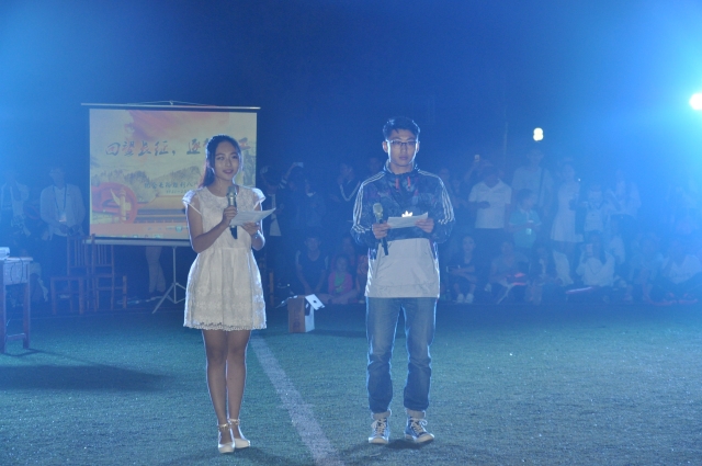 晚上7时整晚会准时开始,首先由主持人介绍活动内容以及活动规则。数百名同学席地而坐,在操场围成一个象征“团结友爱”的大圈。每位同学手中都挥舞着荧光棒,整个操场瞬间成为光的海洋。