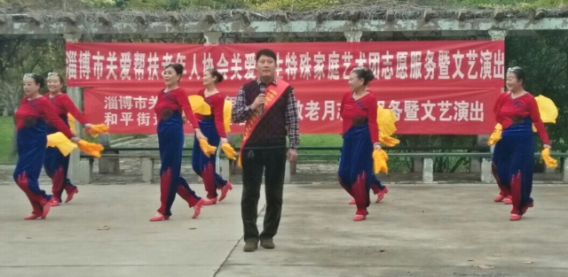 为庆祝敬老月,十月二十五号星期二,阳光社工协会与淄博市关爱帮扶老年人协会合作,前往和平街道祥和社区进行志愿服务暨文艺演出。