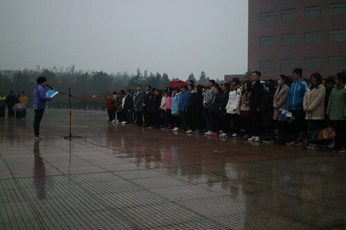 升旗完毕,许燕飞发表讲话。她倡议同学们要“坚定理想信念,勇担青春使命”。老员工要在风华正茂的青春里,书生意气,挥斥方遒。发扬雷锋在有限的青春里为人民无限的服务精神。只有为社会服务的青春,才是值得回忆的青春。同时,她还激励所有同学在社会主义核心价值观的指导下,做一个爱国、敬业、诚信、友善的良好青年,为祖国美好的明天奋斗。