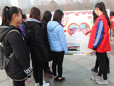 为树立淄博慈善义工形象,提升志愿服务水平,展示阳光社工志愿者服务团队风采,12月4日上午,在第31个国际志愿者日来临之际,以“慈心善行、你我同行”为主题的“志愿服务·慈善义工在行动”义工服务活动于淄博市中心文化广场举行。此次活动由淄博市文明办、淄博市民政局、淄博市慈善总会、淄博市社区志愿者联合会主办,张店区文明办、张店区民政局、张店区慈善总会协办,阳光社工志愿服务团队及其他15个单位参加了此次活动。