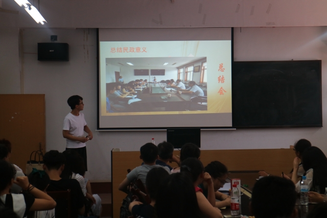 汇报完毕后,曹绪红进行扼要总结:实习时间尽管短暂,但你们在实习中学到的知识和技巧是无限的,实习的收获对你们今后的工作将会具有重要的意义。牛喜霞最后作了补充:首先,我要感谢实习单位各位领导为同学们提供宝贵的实习机会,感谢实习单位领导对同学们的无私关心和包容;其次要感谢陈红兵、周慧敏等各位指导老师,是你们全程给员工进行实习指导,而且亲赴实习单位看望同学们,这给他们带去了诚挚的关怀;再次,要感谢同学们积极参与,亲身实践,我能感受到你们对实践的激情,也能看到你们的成长与收获;最后,牛喜霞希望同学们能够充分利用公司的有利环境,认真学习,踏实努力,以积极的心态备战以后的研究生、公务员等各项考试,争取取得优异的成绩。