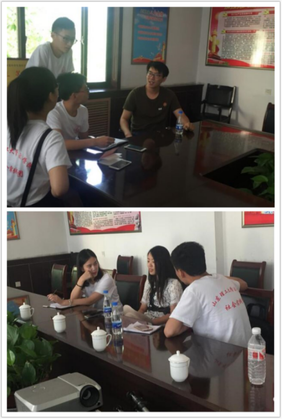 我们也拿出了预先准备好的问卷请青年村官们填写,随后展开了二对一的纪实访谈。在访谈过程中各小队提出了“任职的主要经历”、“初任职时的困难”“在基层工作中的感受体悟”等一系列问题,学长学姐们对于问题认真思考,耐心回答;回答过程时而愉快,时而深沉,时而高亢,时而感慨;从不同的层面给出了最真实的答复,没有大道理和理论,从这些学长学姐口中听闻的趣事见地让我们对这个群体有了更深刻更全方位的了解。在基层的他们,没有了便捷的网络,没有了丰富的休闲方式,在山里,在乡间,听着鸟鸣,嗅着花香,服务着基层。是奉献更是一个青年人的沉淀与学习。