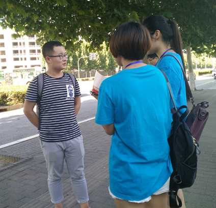 首先,团队负责人肖朝霞将团队人员分成小组,每三人一组;分别进行采访、记录、录像等记录。其次,要求队员设计访问提纲、恰当进行提问,准确捕捉信息,并及时收集相关资料。采访活动结束后,队员同意集合到规定地点整理收集的采访内容并进行整合,将宝贵的群众意见建议整合后送给淄博市城市管理行政执法局。