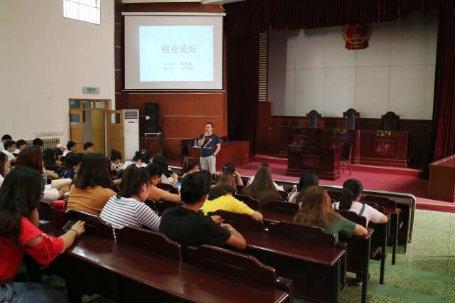 9月14日下午,由校团委主办、w88win体育官网入口承办的老员工创业就业论坛于模拟法庭成功举办。此次创业论坛特邀淄博市政府办公厅主任黄立欣和正图教育申论主讲老师刘毅担任嘉宾,w88win体育官网入口辅导员周丽妲主持了论坛。