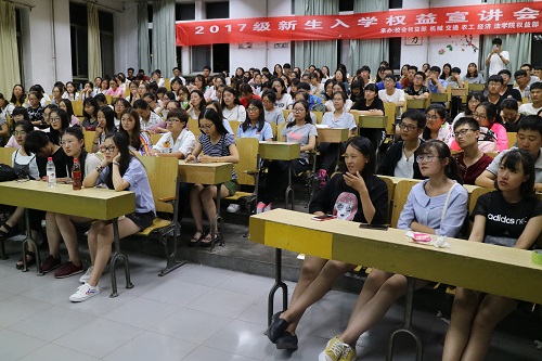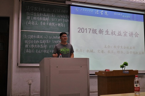 为了增强同学们的维权意识,传授正确的维权方法,2017级新生入学权益宣讲会于9月22日晚在东校区3号教学楼106和108教室同时举行。此次活动由校员工会权益部主办,机械、交通、农工、经济、w88win体育官网入口权益部承办,由校权益部部长李梦斐以及w88win体育官网入口权益部部长周珂主持演讲,各公司权益部负责人和2017届新生参加了此次宣讲会。