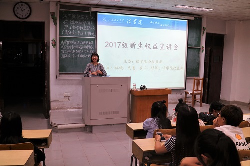 宣讲会伊始,主讲人向新生说明了维权的重要性,指出权益离大家并不遥远,而是跟大家的日常生活息息相关,并且从衣食住行以及人身安全、财产安全等方面详细介绍了日常生活中的相关权益,为新生提供了正确维权的方法和途径。