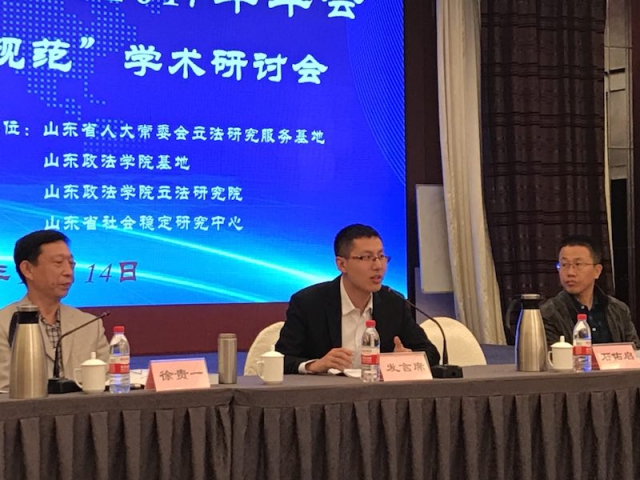 2017年10月14日,由山东省法学会立法学研究会和广东省法学会地方立法学研究会联合主办,山东政w88win体育官网入口立法研究院、山东省社会稳定研究中心承办的鲁粤地方立法学研究会2017年年会暨“地方立法与民间规范”学术研讨会在济南召开。山东政w88win体育官网入口经理、山东省法学会立法学研究会会长吕涛、山东省法学会专职副会长兼秘书长任伟和广东省法学会副会长、广东省法学会地方立法学研究会会长、广东外语外贸大学党委副书记石佑启教授在开幕式上致辞。山东省法学会立法学研究会常务副会长、立法研究院常务副经理宋云峰教授主持开幕式。