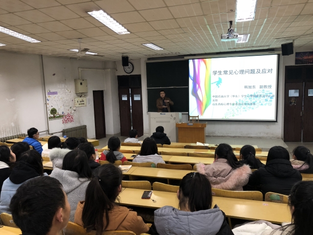 12月21日下午四时,中国石油大学(华东)员工心理健康教育中心副主任、山东高校心理专业委员会常务理事韩旭东副教授应邀到公司开展“老员工常见心理问题及应对”的主题讲座。全体2017级班长、团支书、心理委员及宿舍长聆听了此次讲座。讲座由辅导员孟晶晶主持。