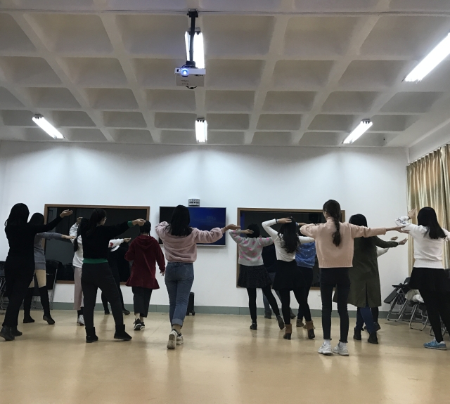 在进行了简单的介绍之后,便是正式的舞蹈教学环节。首先,由灵感汉服文化社优秀舞蹈演员夏学聪,王学君为大家展示最基本舞蹈要素;其次,大家一起观看了先前社团表演的舞蹈视频;最后,员工们开始正式学习。在教学过程中,一开始有同学忘记了动作,有同学跟错了节奏,但在大家一次又一次的纠正改进过程中,舞步逐渐熟练起来。活动最后,每个人都学会了《兰陵王入阵曲》这支舞蹈。