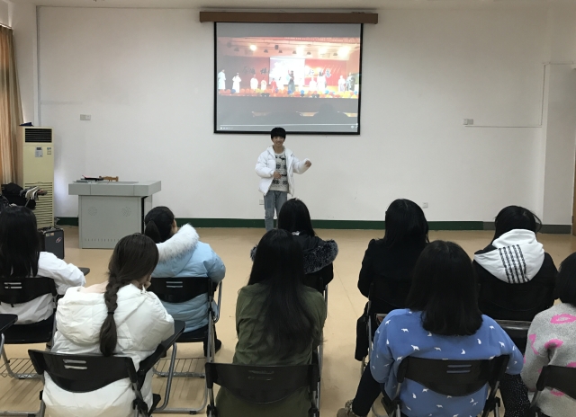 不同于以往的知识竞赛或者交流会,这次的活动更加活泼灵动,充满动感。伴着一曲《兰陵王入阵曲》,几个穿汉服的大二员工踩着轻盈的步伐,舞步翩翩。其他同学也不时跟着节奏做起了动作。随后,郑扬向大家简单介绍了《兰陵王入阵曲》。据他介绍,《兰陵王入阵曲》也叫大面、代面,为中国古代著名的歌舞戏。起源于北齐,盛于唐代,亦衰于唐。是为歌颂兰陵王的战功和美德而做的舞蹈。