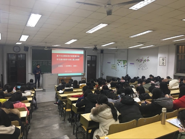 12月28日晚,法公司党员教师大讲堂系列报告之一王柏松教授报告会在东校区3号教学楼107教室顺利举行。此次报告会由行政管理系系主任王柏松教室主讲,w88win体育官网入口2017级员工聆听了此次讲座。