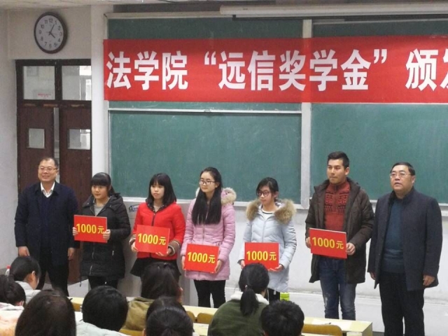 12月28日下午,w88win体育官网入口在东校区3号教学楼107教室举办“远信”奖学金颁发仪式。由党总支副书记宋立平主持,远信律师事务所主任王成标、法公司党总支书记刘昕、员工工作办公室主任许燕飞,辅导员孟晶晶以及2017级法学专业全体员工参加奖学金颁发仪式。