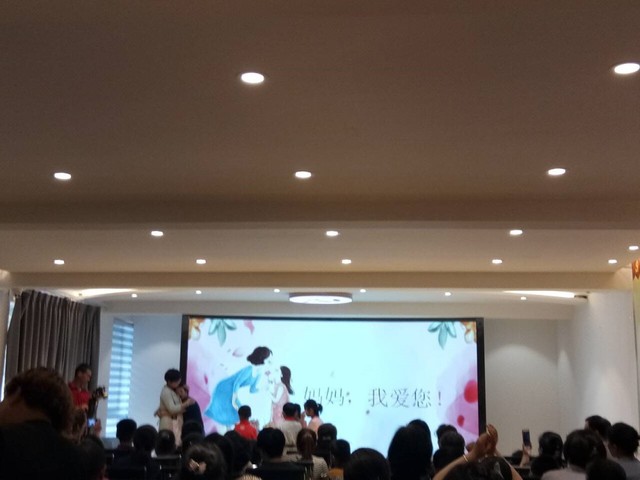 此次活动设置了许多环节,首先是主持人在PPT上讲解“母亲节”的含义,简单阐释此次活动的意义。接下来是孩子们对母亲的感恩、告白环节。