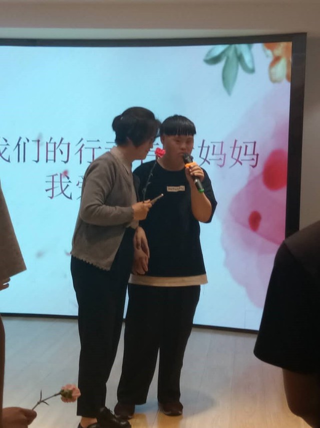 在孩子亲口对母亲说出祝福的话时,一些孩子和母亲紧紧相拥,流下了眼泪。在志愿者的帮助下,每个孩子都给母亲献上了一朵康乃馨,还有孩子主动给母亲捶背捏肩,以自己的行动表达对妈妈的爱。