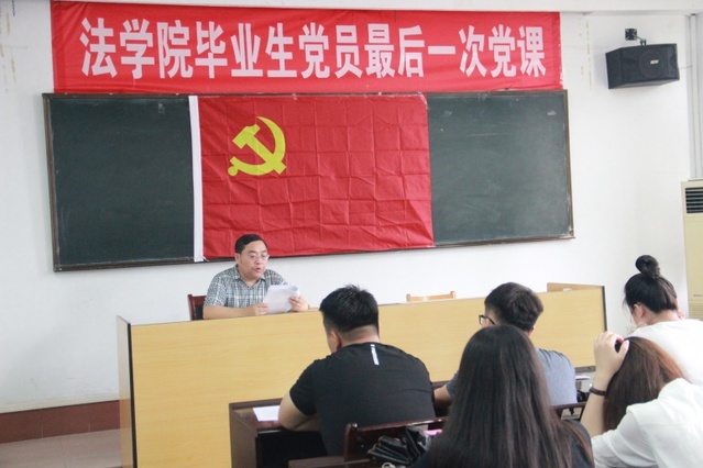 宋立平在主持党课时指出,全体毕业生党员要进一步坚定理想信念,增强党员意识,加强党性修养,把纪律挺在前面,把责任扛在肩上,把学习落到实处,真正做到思想上坚定追随,政治上绝对忠诚。在今后的工作、学习中,不忘初心,立大志向,树大目标,做大学问,成大事业,在民族复兴的伟大事业中,实现自己的人生价值和美好追求。