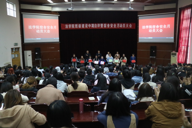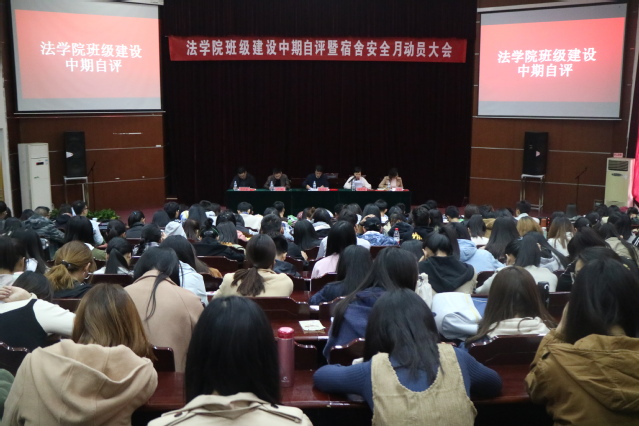 10月31日下午,w88win体育官网入口在西校区模拟法庭举行班级建设中期自评暨宿舍安全月动员大会。法公司党总支副书记宋立平、员工工作办公室主任许燕飞、辅导员孙明、孟晶晶、李振铭、w88win体育官网入口各班班长、团支书、生活委员以及各宿舍舍长参加此次会议。会议由许燕飞主持。