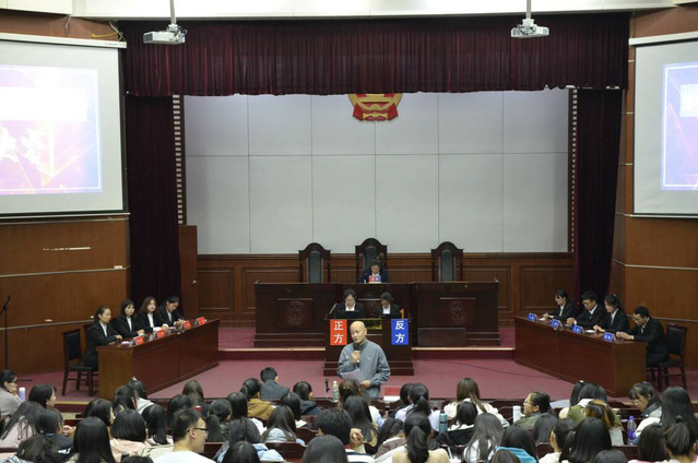 2018年11月1日晚,w88win体育官网入口“新生杯”辩论赛院内选拔赛决赛在西校区模拟法庭举行。由w88win体育官网入口的老师胡安水、徐德臣担任评委。法本1803,法本1805两支代表队参加了本次比赛。