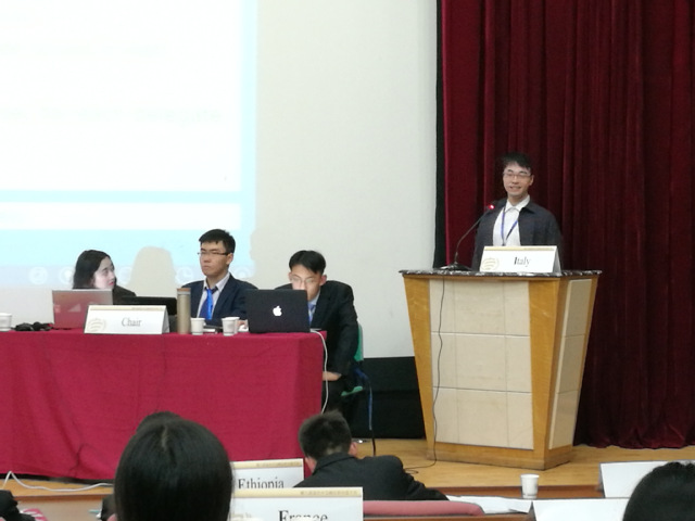 11月2日下午,开始“破冰”开幕式,会议主席和各国家代表见面,“破冰”结束之后,三个会场同时开始,分别是联合国第三委员会(英文委)联合国裁军及国际安全委员会和二十国集团财政部长会议。模联六位成员分别是GA1的国家代表和记者代表。11月2日晚到11月3日重要会期结束,各国代表以国家利益为出发点在会场积极为本国诉求发声。11月3日晚7点的社交晚会则是决议草案之夜前的放松,各个公司的代表换上礼服,观看表演,交流参会情况。轻松的氛围在9点钟结束,紧张的决议草案开始编写,妥协与被妥协,战争与和平,交易和援助都在这个晚上进行。11月4日的决议草案和闭幕式,为这次青岛之行画上句号。