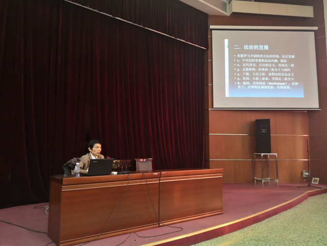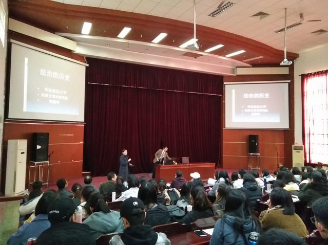 何勤华教授以“法治的历史”为主题,从法治的起源讲起,分别分析中国古代的法家、古希腊亚里士多德的良法之治及古罗马法的实践以及古代美索不达米亚的法治,梳理了域内域外重要法治思想与学说,总结各历史线索的优缺点及历史教训,深入分析了近代以来欧美主要国家的法治理论与实践。何教授总结了中国法治变迁的历史性规律和特征,归纳了中华民族对人类法治传统的贡献,并结合十九大中有关法治的亮点内容和法治中国建设的重点问题提出了独到见解。