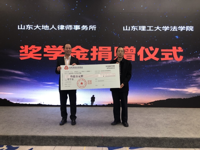 近日,山东大地人律师事务所与公司达成合作协议,双方将进行全方位合作。同时,大地人律师事务所捐资30万元在公司设立“大地人律师”奖学金,自2019年—2028年每年拨付3万元,每次奖励不少于10名优秀法学学子。