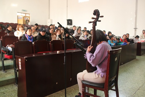 在辩论赛结束后,崔雨菲为大家弹了一首《青花瓷》的琵琶曲,轻拢慢捻抹复挑,向我们展示了琵琶的动人音色。