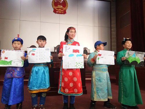 为深入学习贯彻习近平新时代中国特色社会主义思想,增强团员先进性和光荣感。向从草原来研学旅行的小朋友们展现独特的法学风采。12月8号上午,法本1703班在西校区模拟法庭举办了以“我与草原心连心,共学青年新思想”为主题的团日活动,法本1703班全体同学参加。