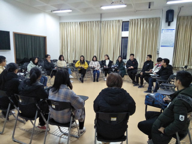 在接下来的座谈会中,大家都踊跃发言,会议气氛非常活跃。大家都对社团发表了自己的看法,其中包括社团的组成、社团具体活动等等。总之,参加会议的小伙伴们都非常积极,力求为社团向更好的方向发展贡献一份力。有18级的新干事还反映了一个很重要的情况,那就是许多社团成员参加过的活动特别少,他们非常渴望参加活动,但又苦于课余时间太少,没有时间参加。为此,大家提出解决方法,活动尽量安排在公休时间,让18级新成员能有更多参加活动的时间。