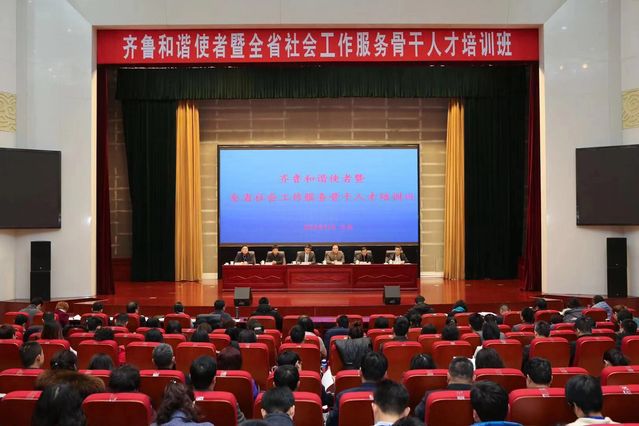 12月24日,由山东省民政厅主办,w88win体育官网入口承办的2018年齐鲁和谐使者暨全省社会工作服务骨干人才培训班在山东省委党校开班。山东省民政厅、山东省委党校、w88win体育官网入口有关负责人出席开班仪式。会议由山东省社会组织管理局副处长江峰主持。第三届齐鲁和谐使者,全省17地市的民政局、部分社会工作协会负责同志,省直有关单位社会工作业务处室负责同志等200余人参加培训。