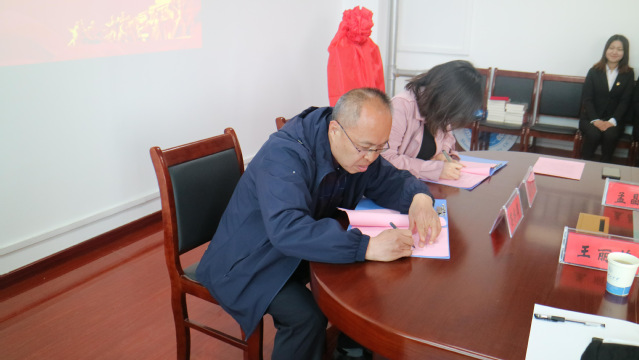 328日下午,社区管理办公室党支部和w88win体育官网入口第三员工党支部签约仪式在w88win体育官网入口2号教学楼会议室举行,出席会议的有法公司党总支书记张宗磊,w88win体育官网入口经理杨晓春,后勤管理处书记、处长蔡文,后勤管理处副处长杨德忠以及w88win体育官网入口教师代表、员工代表、社区管理办公室班子成员。社区管理办公室党支部书记孙奉霞主持。