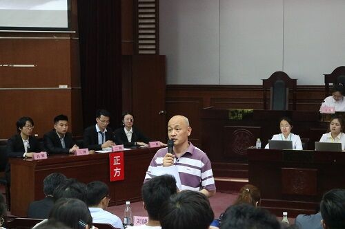 比赛结束后,胡安水对双方辩论进行了精彩的点评,在表扬辩手们辩题观点明确,辩论有理有据的同时,也指出了双方的不足,并提出了指导性建议。