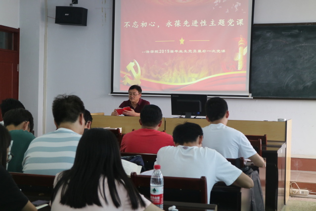 为引导毕业生党员充分发挥党员的先锋模范作用,在今后的学习工作中能够不忘初心,牢记使命,6月5日下午,w88win体育官网入口在西校区2号教学楼323室为2019届毕业生上最后一次党课。党课由法公司党总支书记张宗磊主讲、w88win体育官网入口员工工作办公室主任许燕飞主持,2019届全体毕业生党员参加了此次活动。