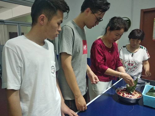 会议开始,博大花园社区书记、主任孙奉霞进行讲话,她在讲话中对端午节的历史含义进行了深刻阐释,强调了加强社区文化建设的重要性,表达了对w88win体育官网入口学子早日成为“五有人才”的殷切期望。全体成员品尝了社区热心阿姨提前准备的粽子,并在品尝之后在社区热心阿姨的指导下开始学习包粽子,大家一边包粽子,一边唠家常,现场气氛十分融洽和谐。在包粽子的过程中,w88win体育官网入口第三党支部为大家带来了精彩的才艺表演,同时为烘托节日气氛,社区齐乐艺术团的老师们为大家表演了民乐合奏。张元成老师对w88win体育官网入口学子进行书法指导,现场学习氛围浓厚。最后,博大花园社区党总支向w88win体育官网入口第三党支部员工及外国职工赠送节日礼物并进行合影留念。
